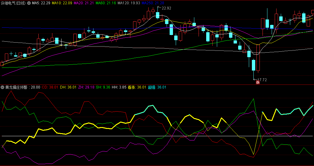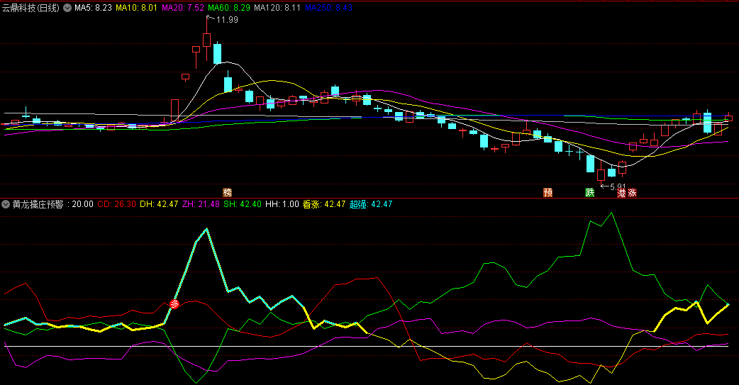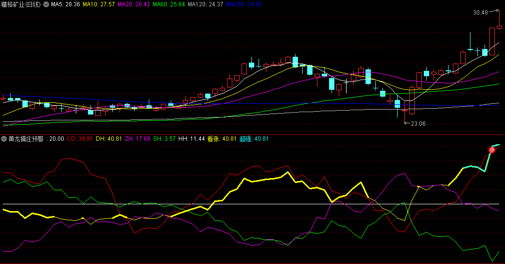 〖黄龙擒庄预警〗副图指标 超强看涨 变色预警 通达信 源码