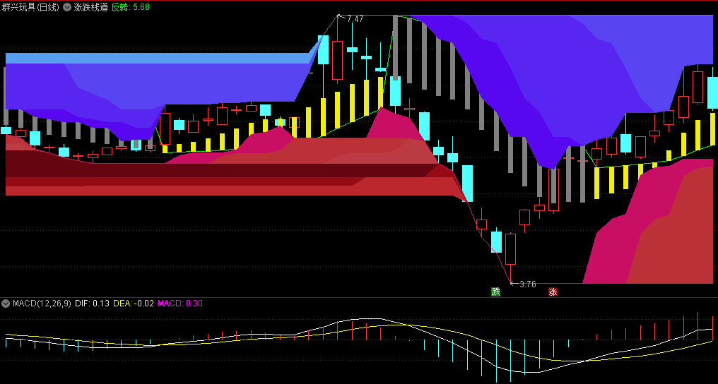 〖涨跌栈道〗主图指标 蓝色山峰压力 紫红山峰支撑 通达信 源码