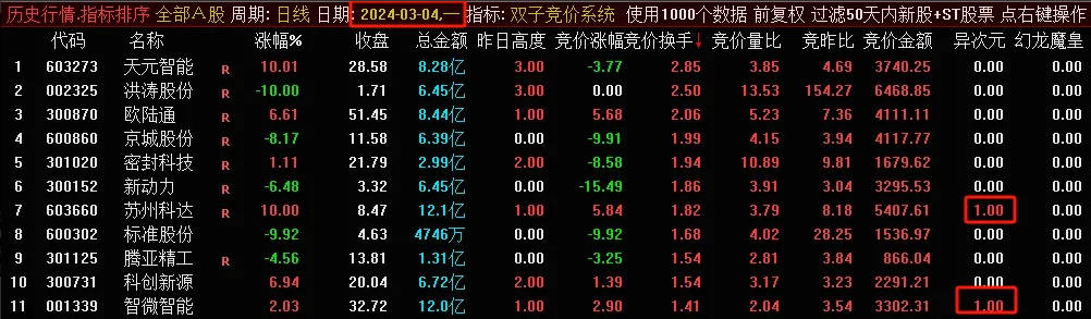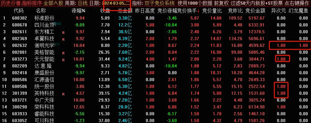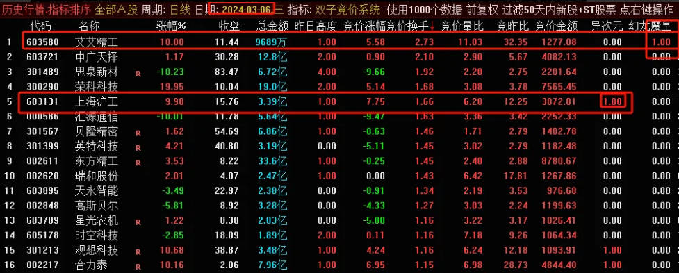 使用方法:9:25 直接选股或者排序选:幻龙魔皇 = 1 的