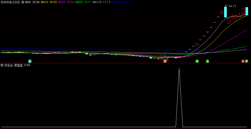 今天要讲的选股指标是进宝盆,这个选股指标是根据幅图指标改编成的选股公式。