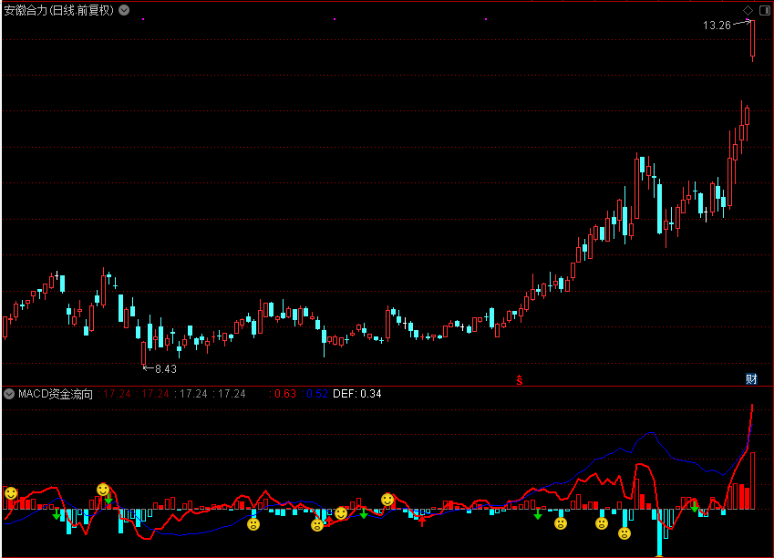 (CLOSE<0 AND CROSS(0,DIFF),H*1.3),COLOR808080,NODRAW;