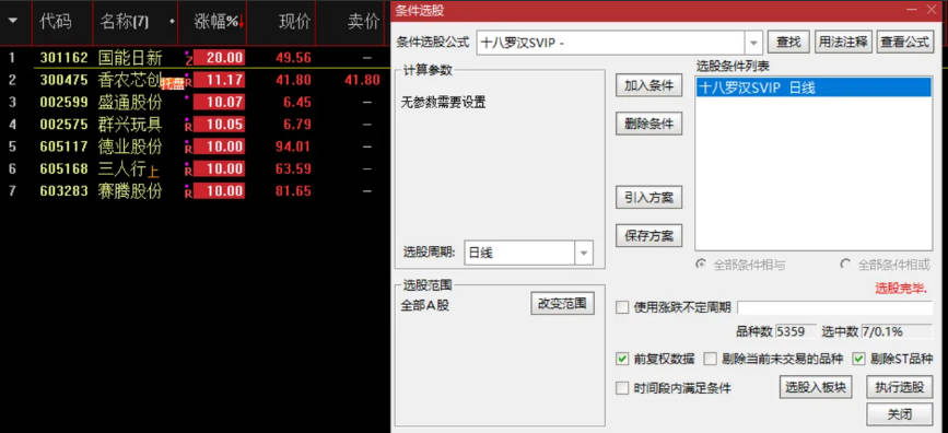 十八罗汉选股综合了N型、N型转向、N型强势突破、N型回踩、N型突破、罗汉六种不同的选股模式。
