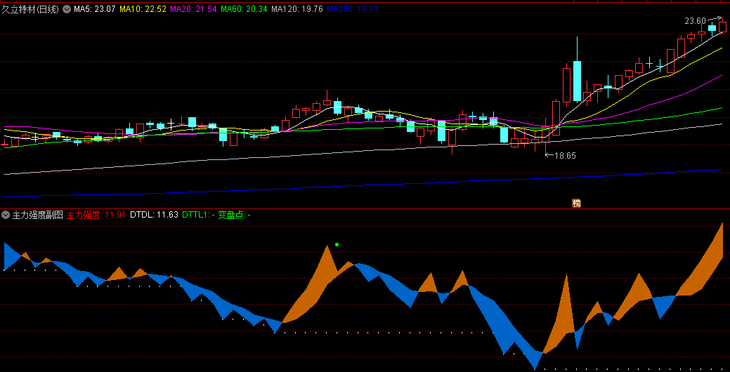 〖主力强度〗副图指标 用来抓波段 透视主力强度 波段逃顶 通达信 源码