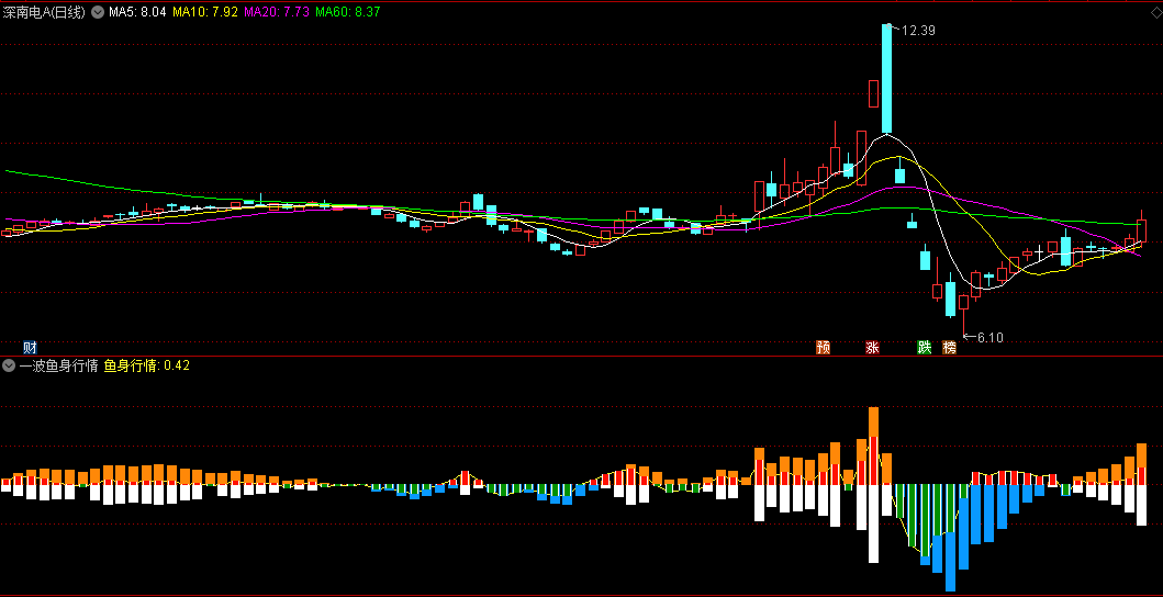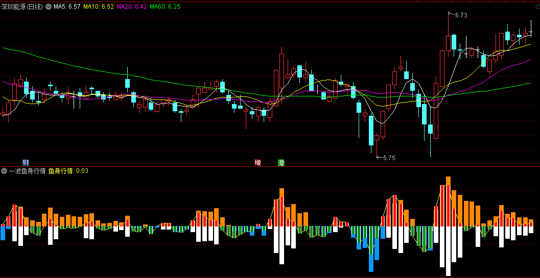 鱼身成形,一波行情:这可能意味着当指标显示出某种特定的形态(如柱线排列成类似鱼身的形状)时,这可能预示着一波行情的开始。投资者可以根据这个形态来识别买入或卖出的机会。