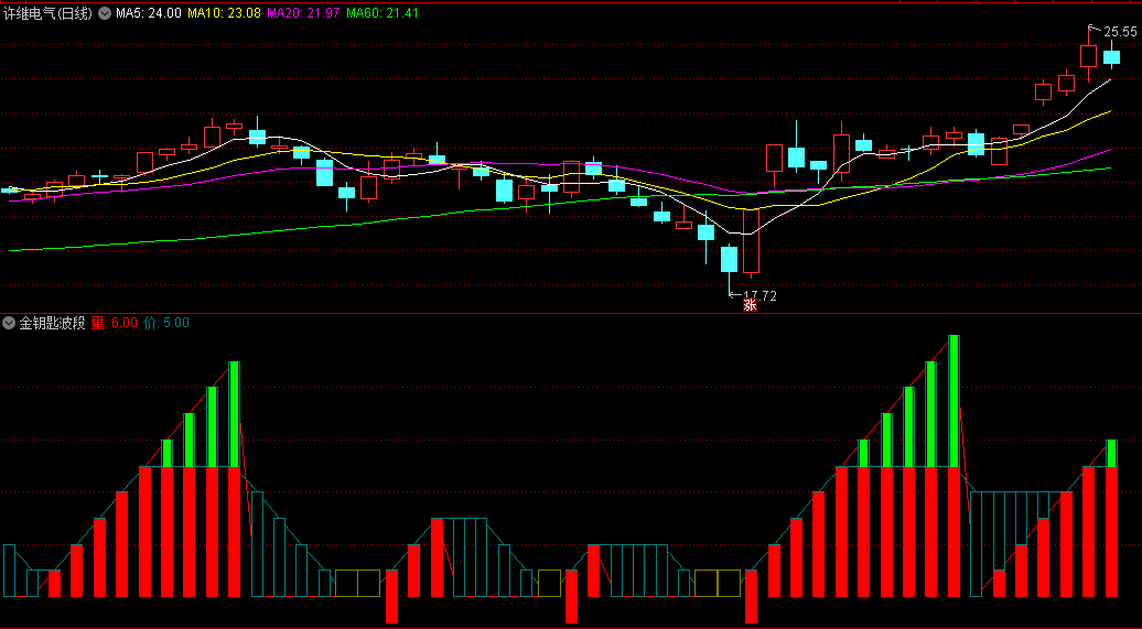 〖金钥匙波段〗副图指标 红柱出现关注 红柱消失撤离 通达信 源码