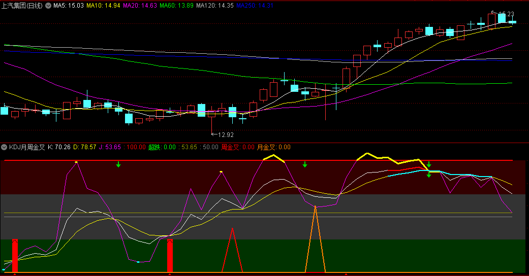 指标的周金叉和月金叉两个信号用到KDJ跨周期函数,其他是没有未来函数的,看趋势有一定帮助。