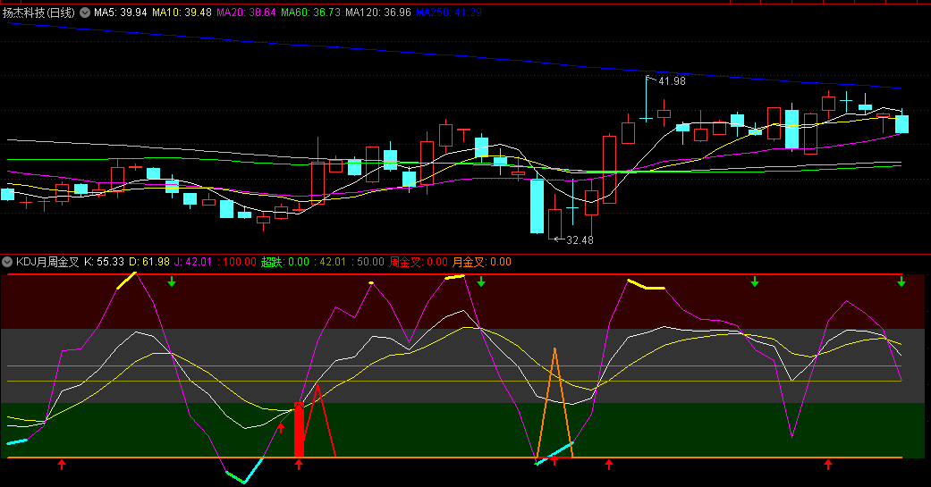 别具特色的〖KDJ月周金叉〗副图指标 周月共振 看金叉的趋势 通达信 源码