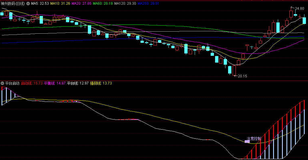〖平台启动〗副图指标 突破平台 注意控制 通达信 源码