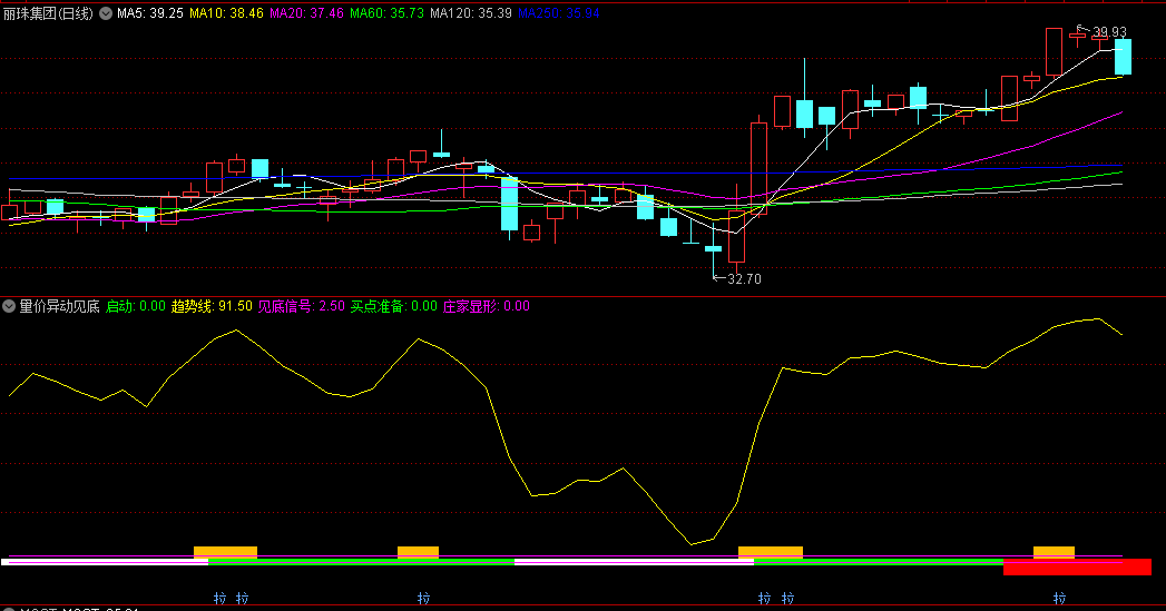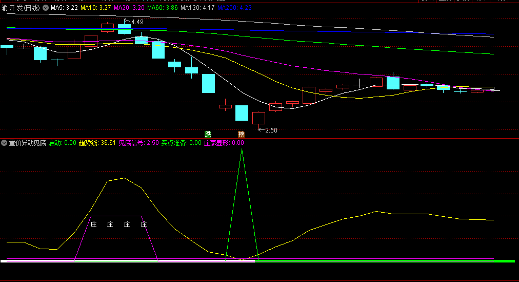 〖量价异动见底〗副图指标 控庄估算 潜力股浮现 通达信 源码