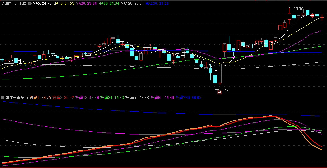 〖强庄筹码集中度〗副图/选股指标 一个很好的筹码集中度指标 股市淘金 通达信 源码