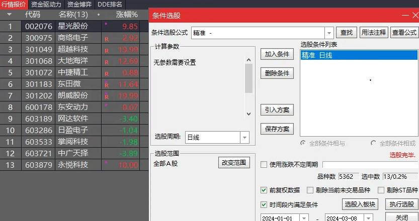 〖精准选股器〗副图/选股指标 傻瓜式选股器 适合上班族使用 通达信 源码