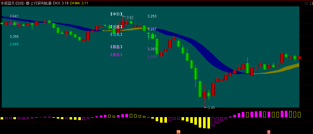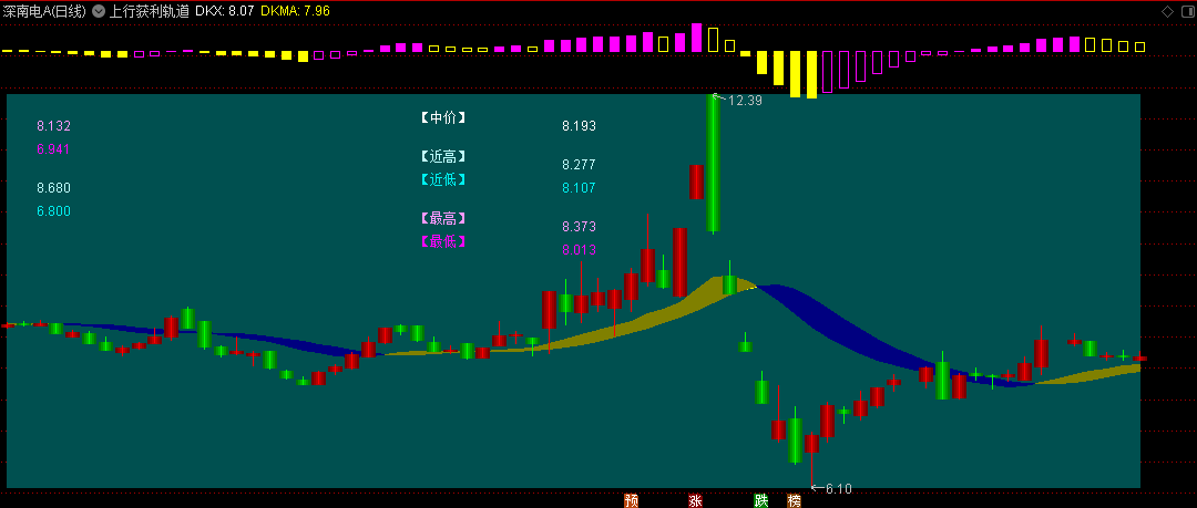 指标特色之处是除了颜色飘带表明趋势之外,而且还有非常详细的股价分析,对平均成本、主力成本、短期支撑、短期压力、获利盘、近高、近低等都有明确标明,使你可以借此分析出合适的切入点。