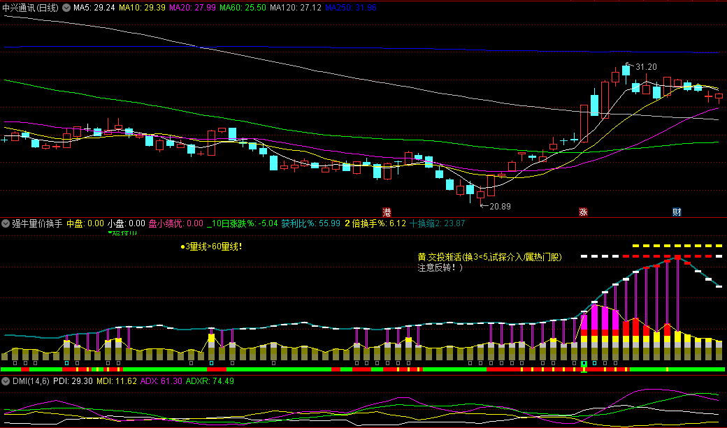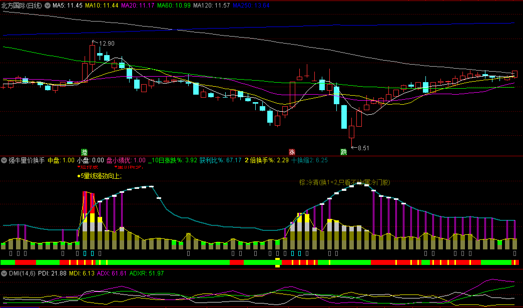 〖强牛量价换手〗副图指标 综合多个指标 有未来函数 通达信 源码