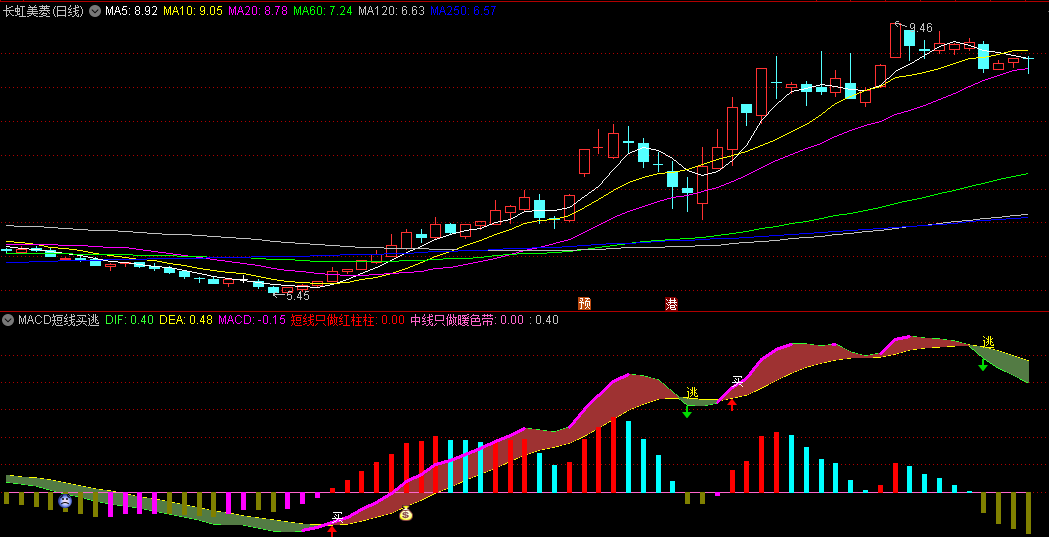 一个自用的趋势指标——〖MACD短线买逃〗副图指标 无未来 通达信 源码