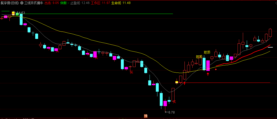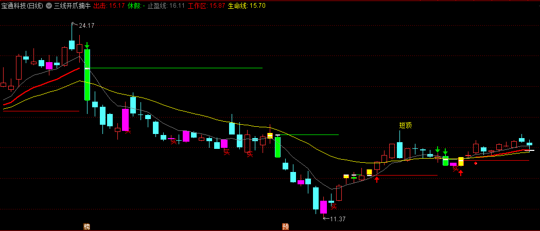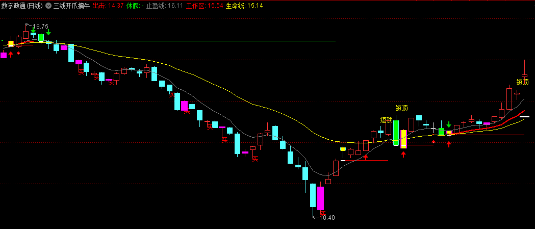 〖三线开爪摛牛〗主图指标 买入和短顶信号提示 无未来函数 通达信 源码