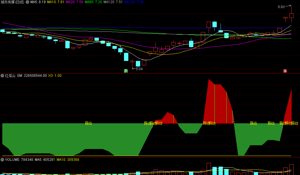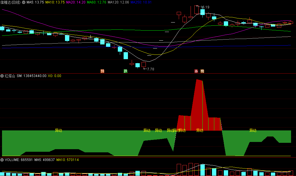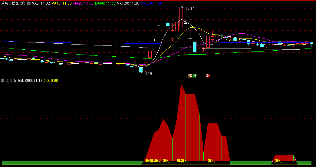 当红色的塔山图标出现,就是主力庄家开始入场操作了,此时可以开始关注!!!!