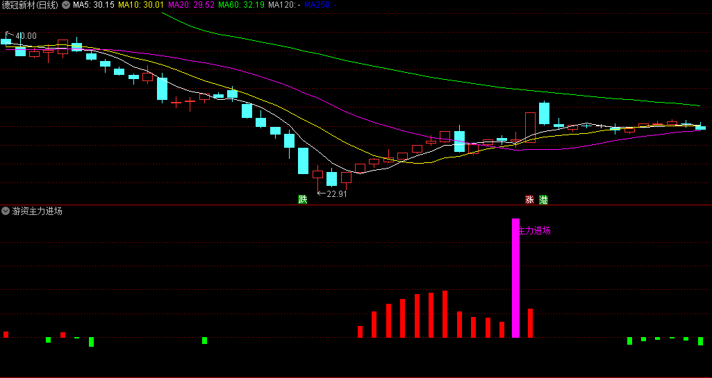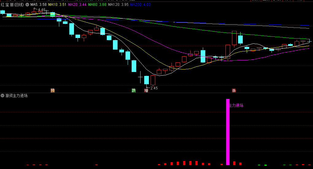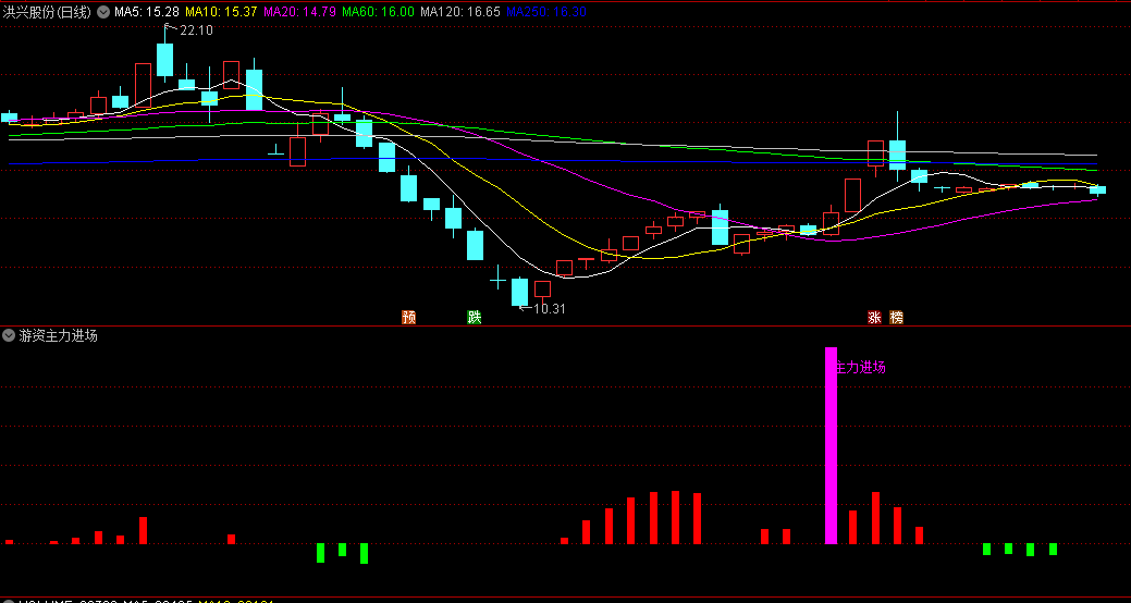 通达信【游资主升介入】副图/选股指标,出现红色抄底信号,参考线低于26时,可考虑轻仓试探