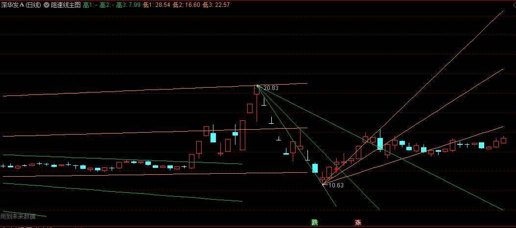阻速线的基本原理,仍是波浪理论及(江恩理轮的百分比)或黄金比率自然法则,是它们的融合体。其实质上即是趋势线三分法的具体应用。当股价运行的速率发生改变时,阻速线也要随之改变。