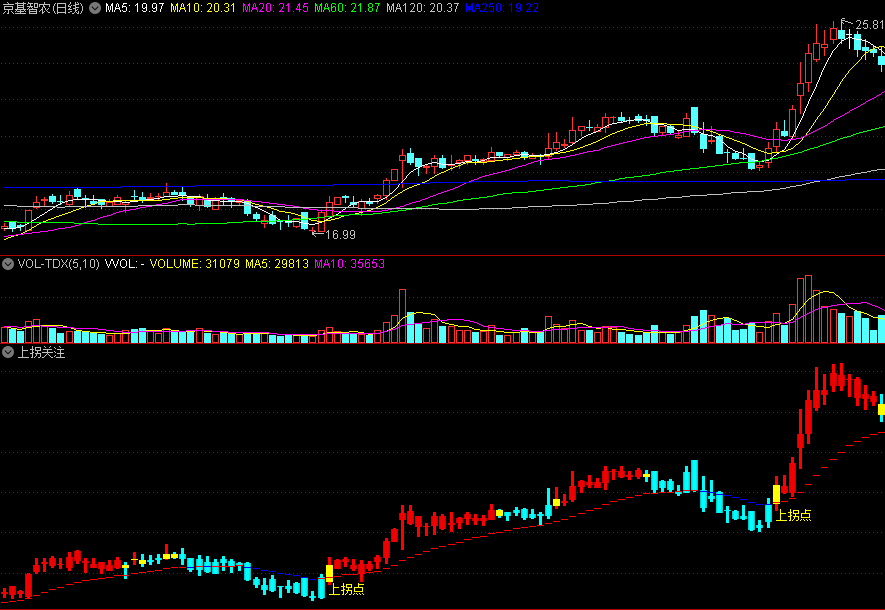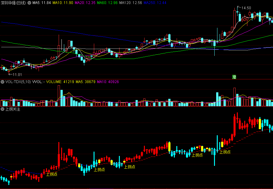 上拐点关注,黄红柱和黄绿柱分别是上下拐点的出现。