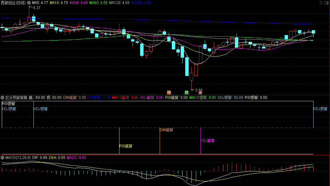 〖区分顶底背离〗副图指标 顶底背离合集 不错的参考 通达信 源码