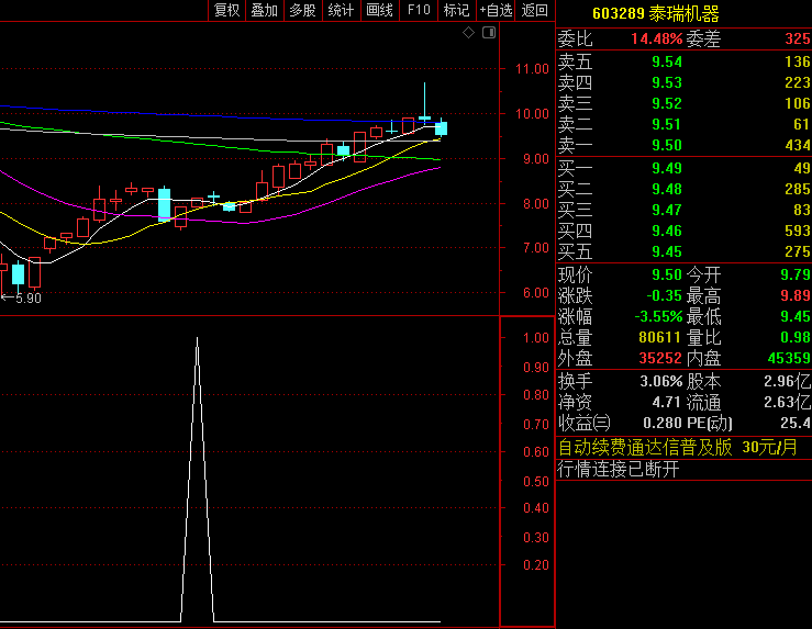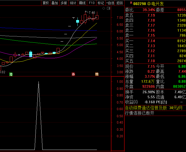 2、短线信号的出货点:结合盘中分时指标,短线的定义为3到8个点间,交易日定义为1到3个交易日,一般隔日冲高就出货。