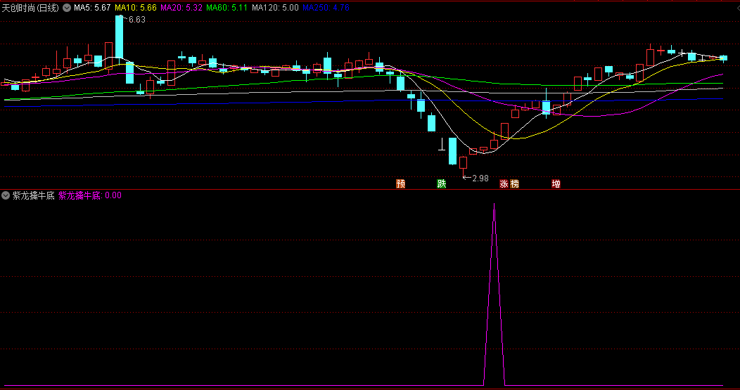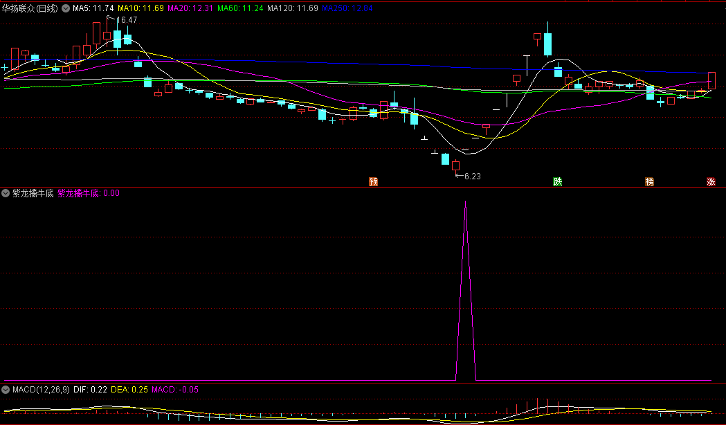 以均线趋势加VOL量能变化为原理编写,出现紫色三角是出手的信号,擒牛底的概率还是比较高,最重要是没有未来函数。