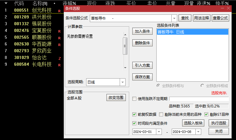 首板寻牛强势首板超短买卖,不含未来,早盘盘中预警指标,指标仅供学习参考请结合指标使用。