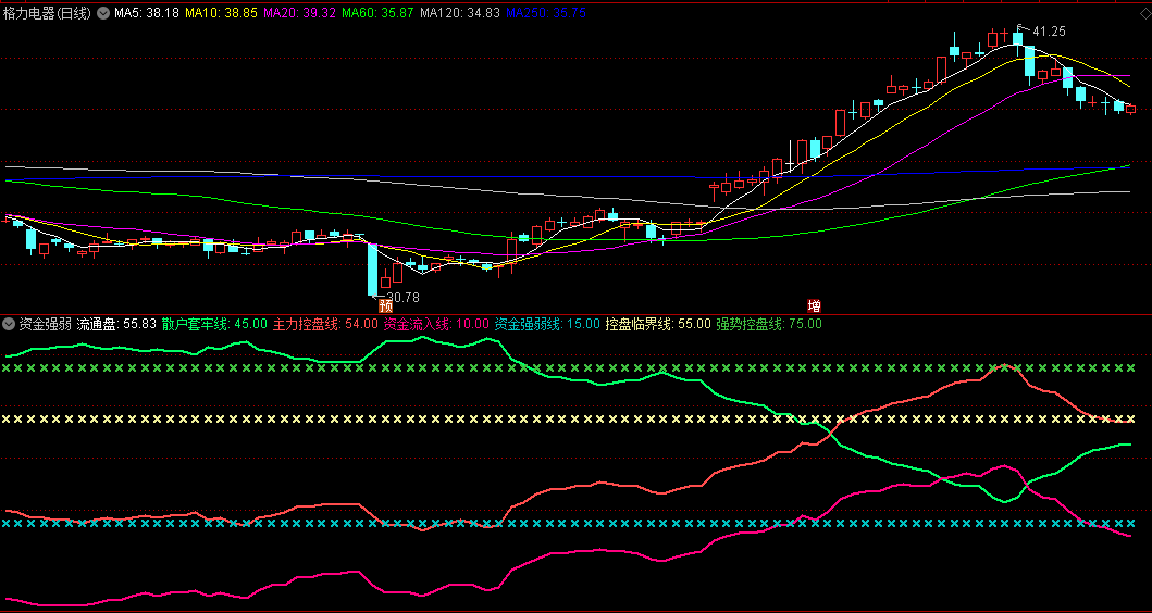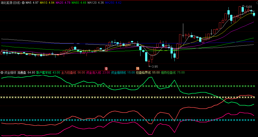 〖资金强弱〗副图指标 资金流入强弱 主力上穿散户就涨 通达信 源码