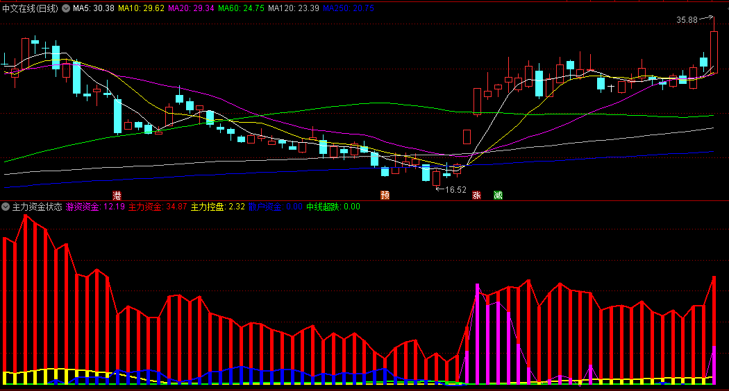 4. 橙色网状:代表主力控盘,橙色中线控盘表示的是主力对个股的把控能力。