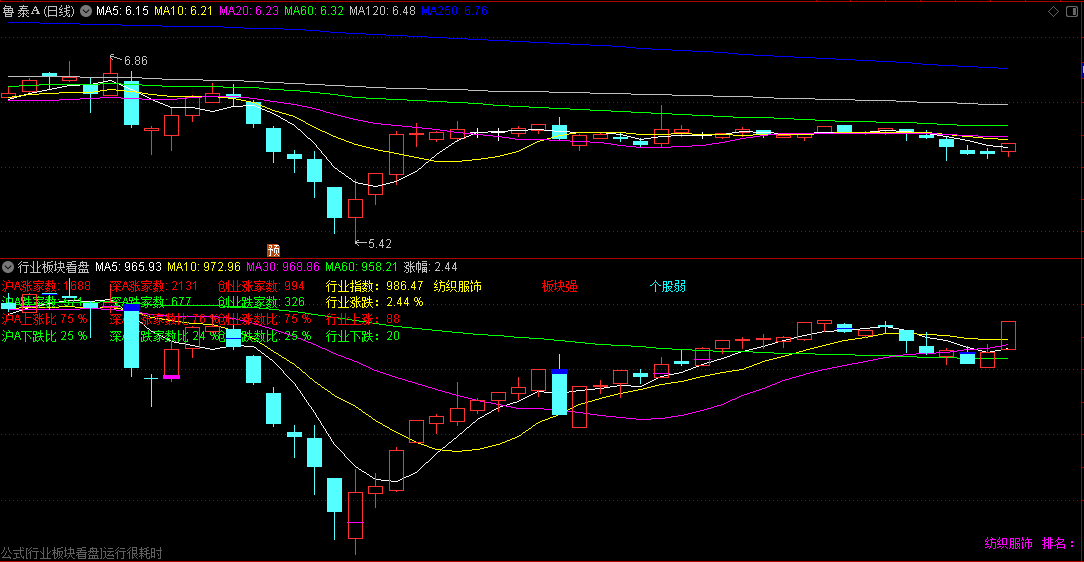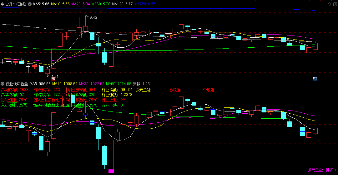 源码不含未来,利用板块副图,可以看到个股对应的行业板块指数,行业排名,板块启动信号K线副图: