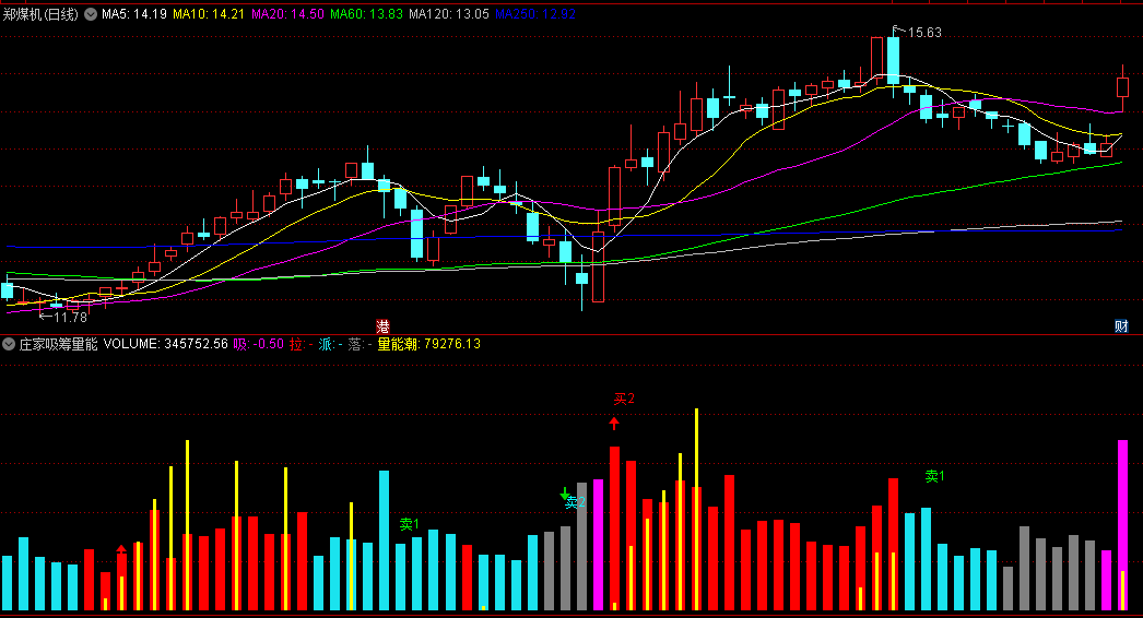 〖庄家吸筹量能〗副图指标 看量做买卖 无未来函数 通达信 源码