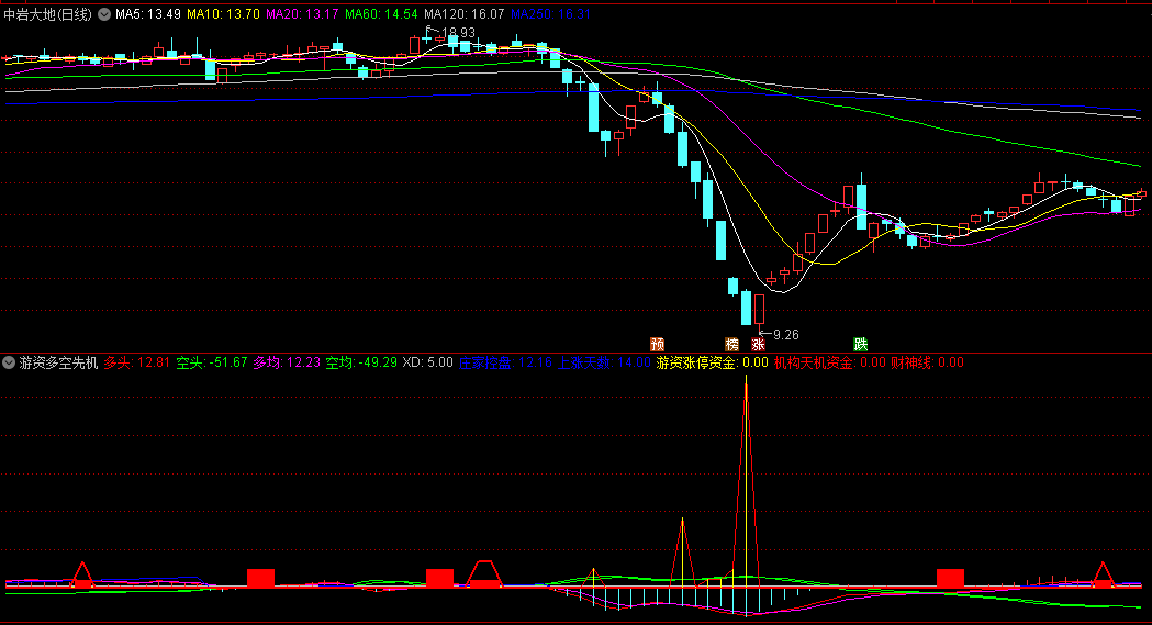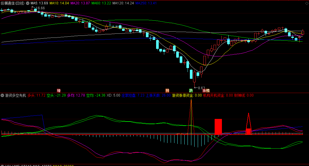 〖游资多空先机〗副图指标 游资涨停资金 机构天机资金 通达信 源码