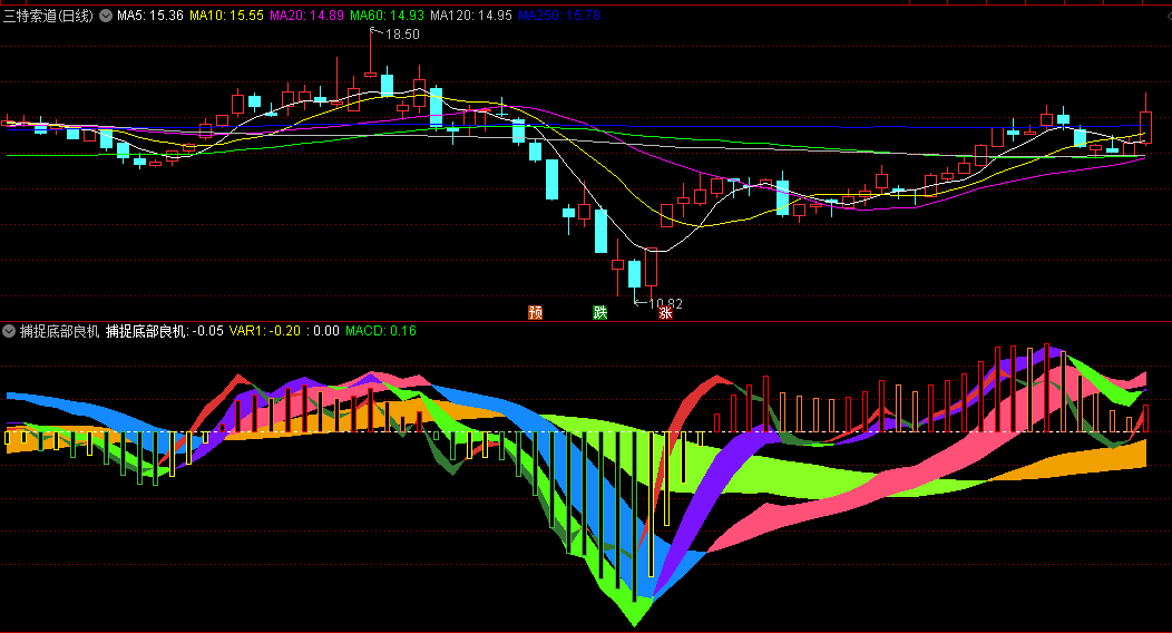 当然,投资股市并非一蹴而就的事情,需要投资者结合多种因素进行综合分析。在利用通达信捕捉底部良机副图指标进行投资决策时,投资者还应关注市场的基本面、技术面以及宏观经济环境等多方面因素,以确保投资的安全和有效性。