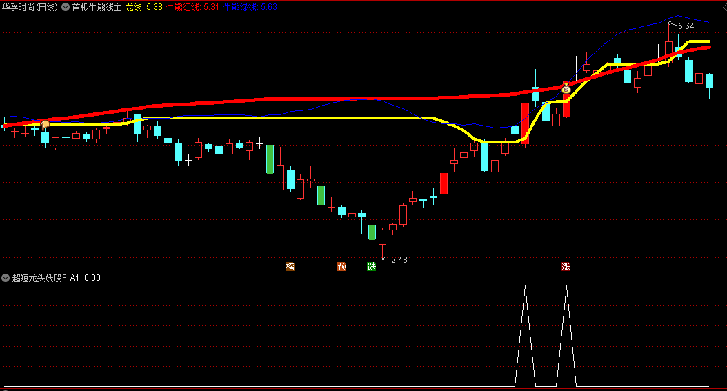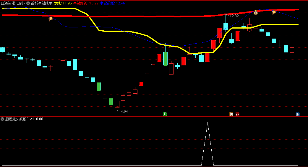 在使用这个主图指标时,建议大家在考虑打板之前,先观察目标股票的首板是否位于龙线之上。若首板在龙线之上,那么这只股票便具有成为妖股的潜力。此外,当蓝线与红线发生交叉并显示走强时,屏幕上会出现“钱袋子”的提示,这通常意味着该股票即将迎来一波上涨行情。