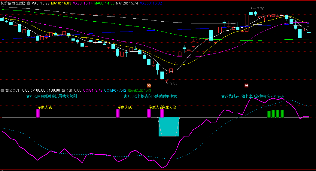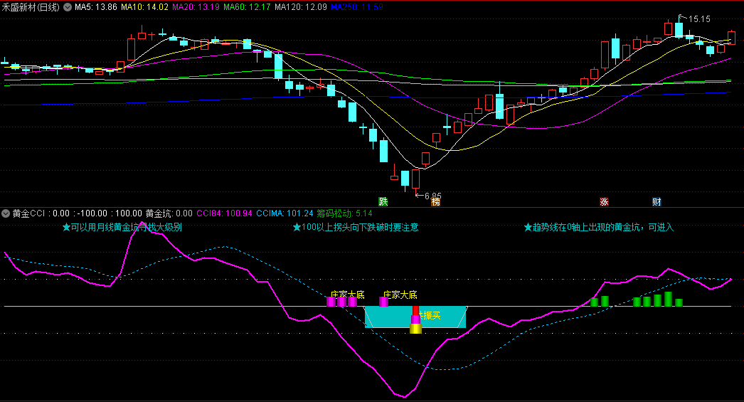 〖黄金CCI〗副图指标 建仓加仓持股和清仓信号明确 可以切换到月线上 通达信 源码
