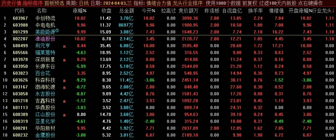 1、对各行业第一名进行强度排序,谓之“龙头之龙头”排序。只在前10名内选股,你永远买到的是“龙头阵列”的股。
