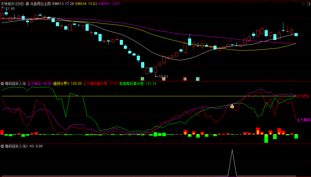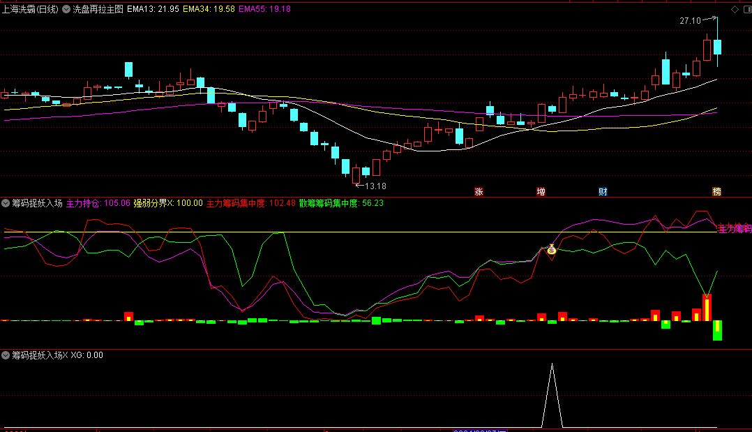 〖筹码捉妖入场〗副图/选股指标 主要研究量能和筹码类的方向 很有参考价值 通达信 源码