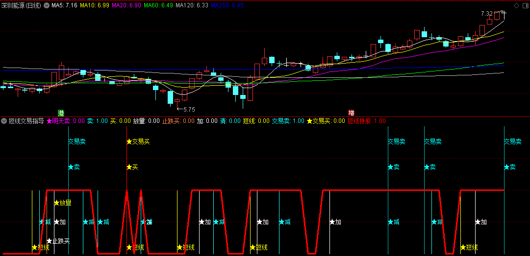 用法:红粗线=1的时候持股,其它按文字说明提示来。