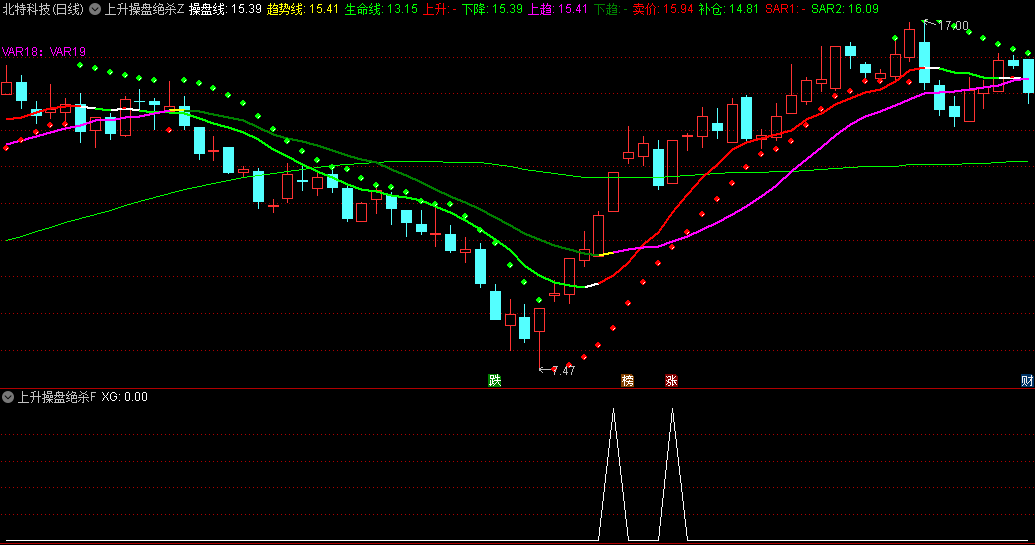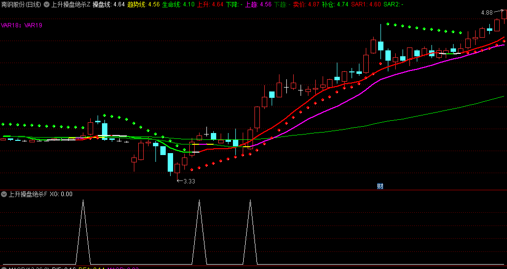指标利用趋势线,操盘线,生命线,三线来做波段做股,适合超短线、中线、甚至长线做股。