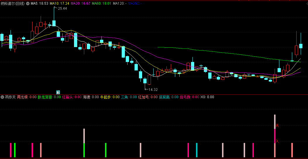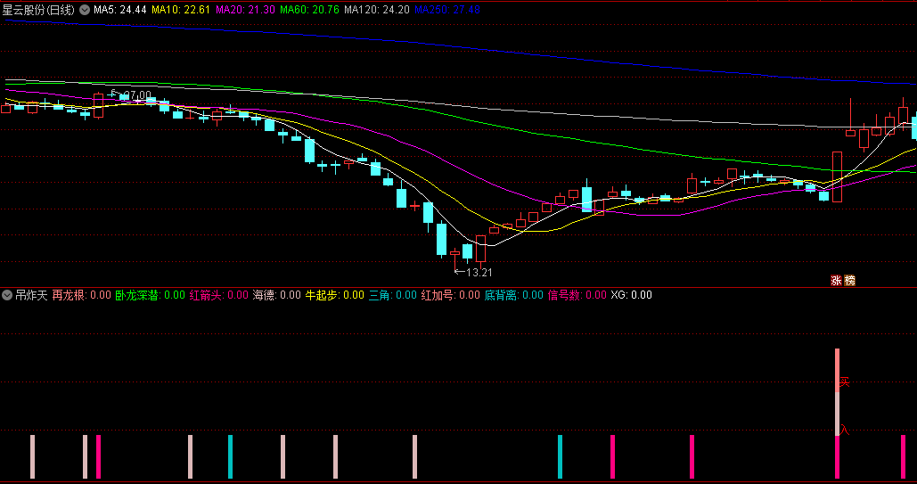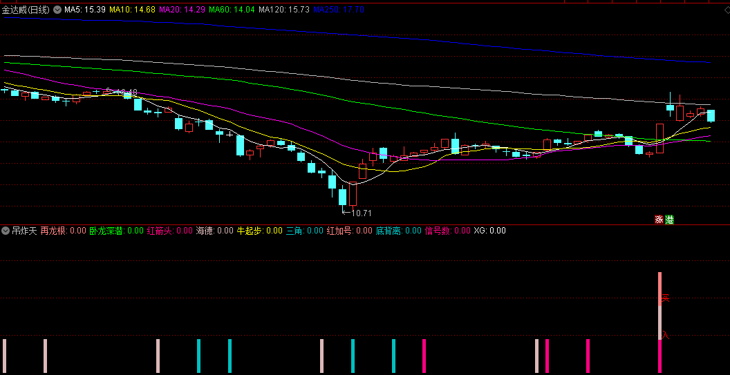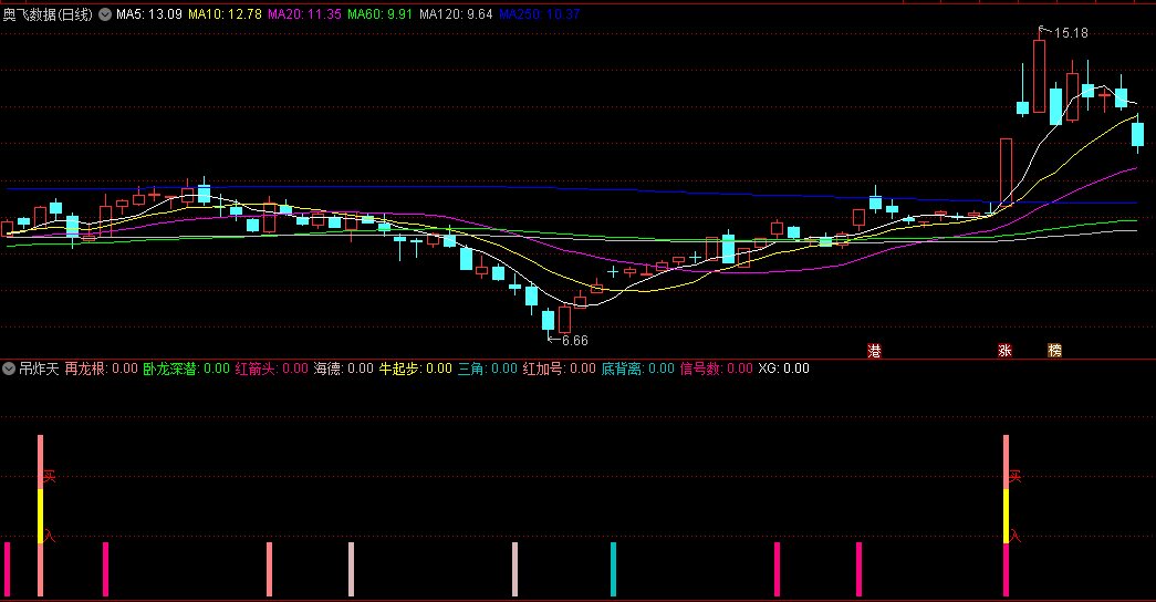 发一个吊炸天的指标,无未来函数,主要用来看牛股基因,当基因叠加到三个,即可买入,概率很高,自己先尝试一下,多寻找规律进行埋伏是最安全的。
