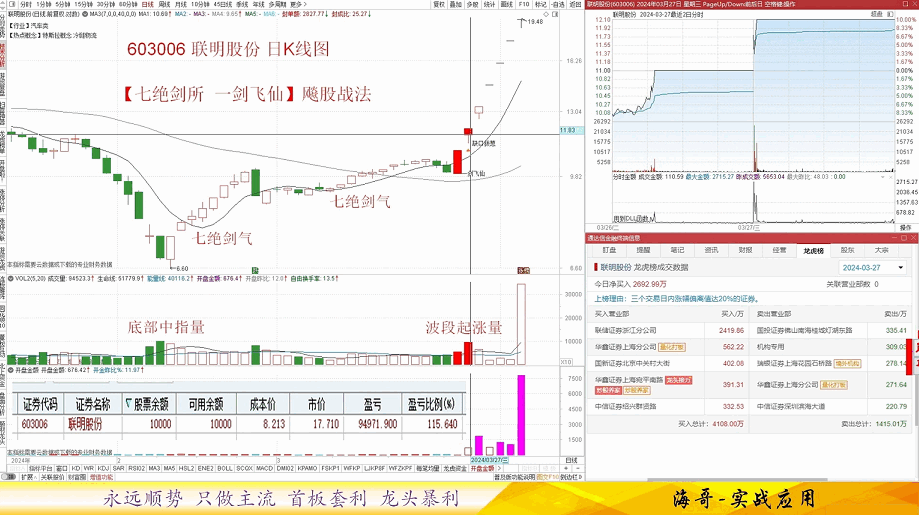 二、集合竞价 日线公式在个股上的运用案例分析图: