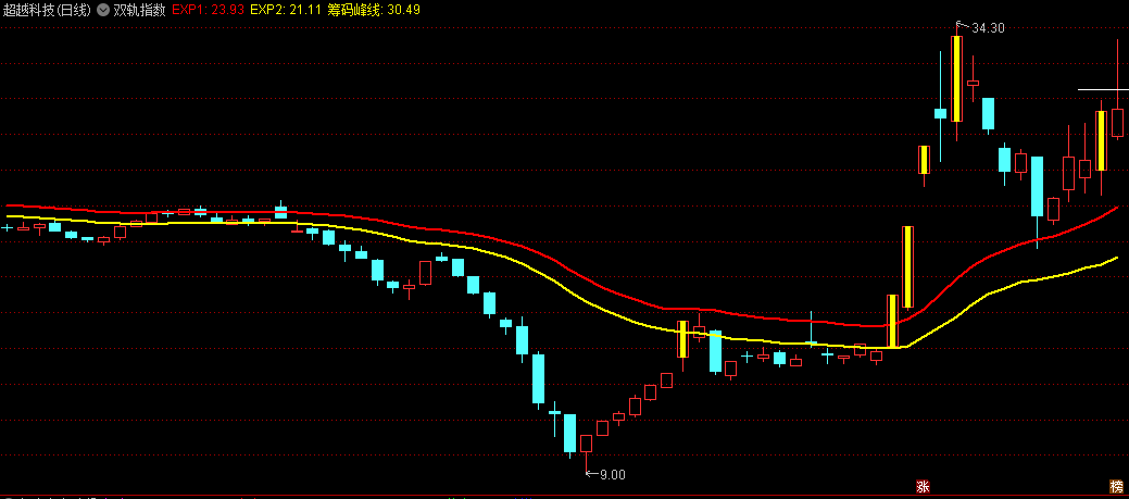 〖双轨指数〗主图指标 股价上穿红线为突破买点 指标介绍 通达信 源码