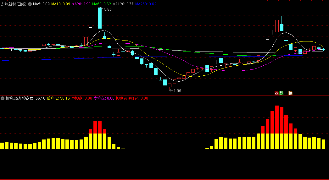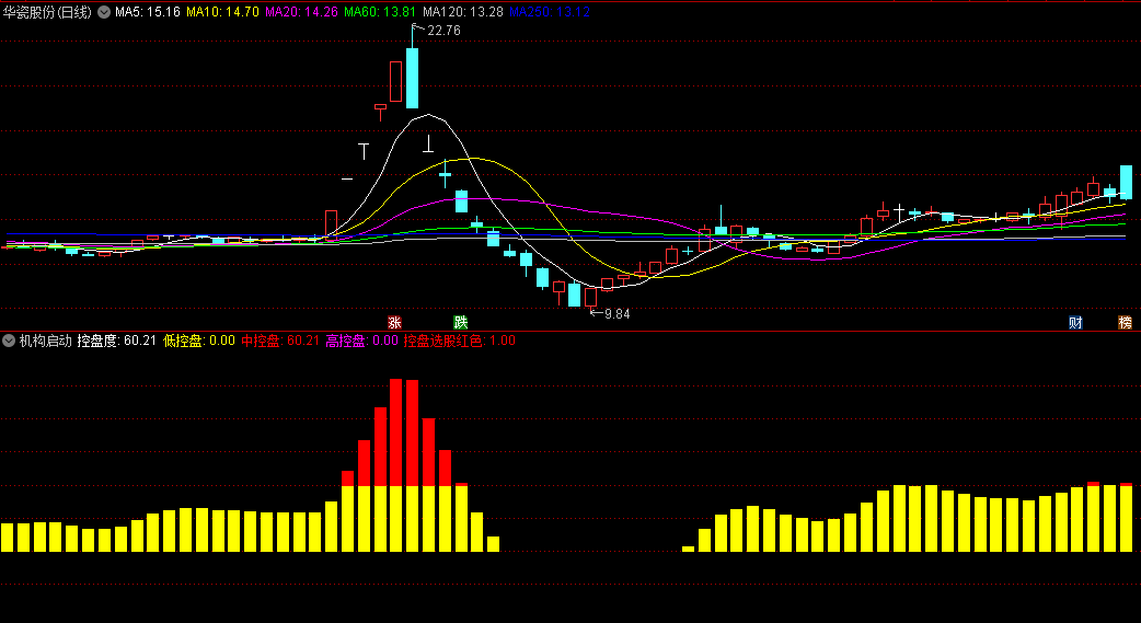 1.黄色柱体为机构低控盘,即控盘程度>=50;