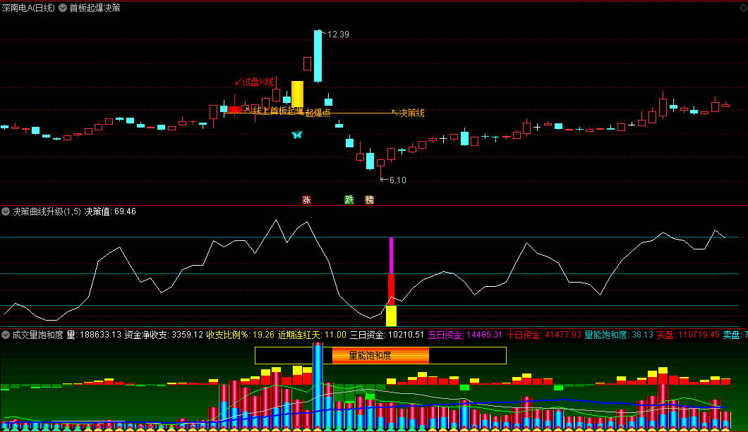 首板起爆决策线是一个技术指标,用于判断首次涨停板后的爆发潜力和决策时机。该指标主要基于交易量和价格走势的分析。