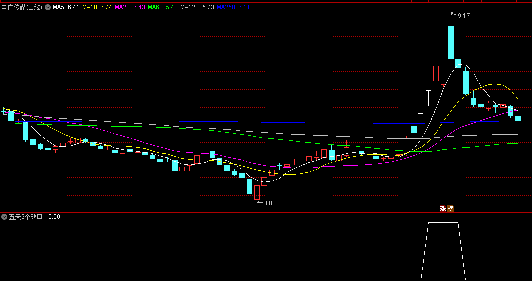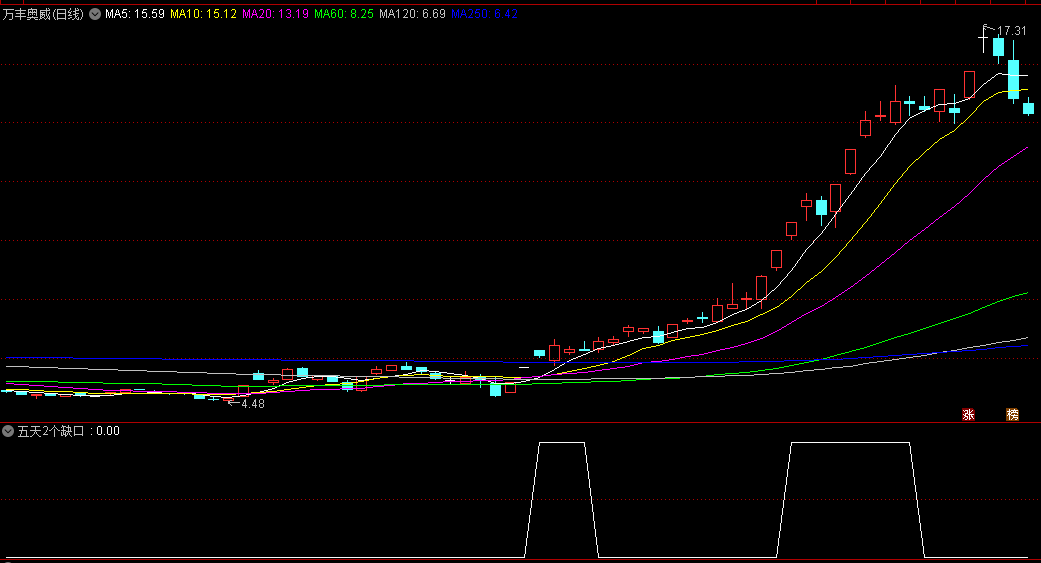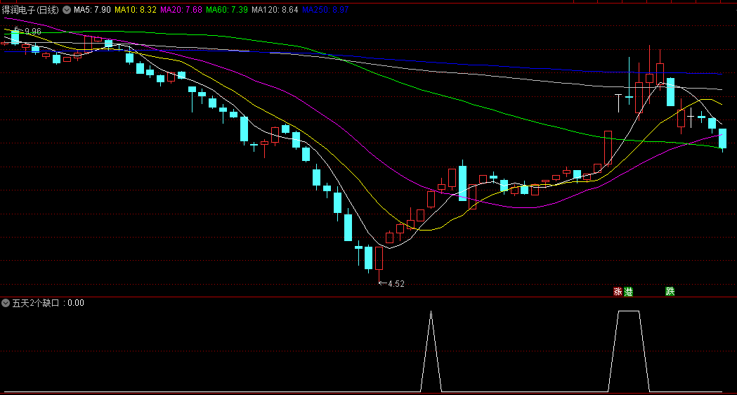 发个自用的〖五天2个缺口〗副图/选股指标 5日内出现2个向上跳空缺口的选股公式 通达信 源码