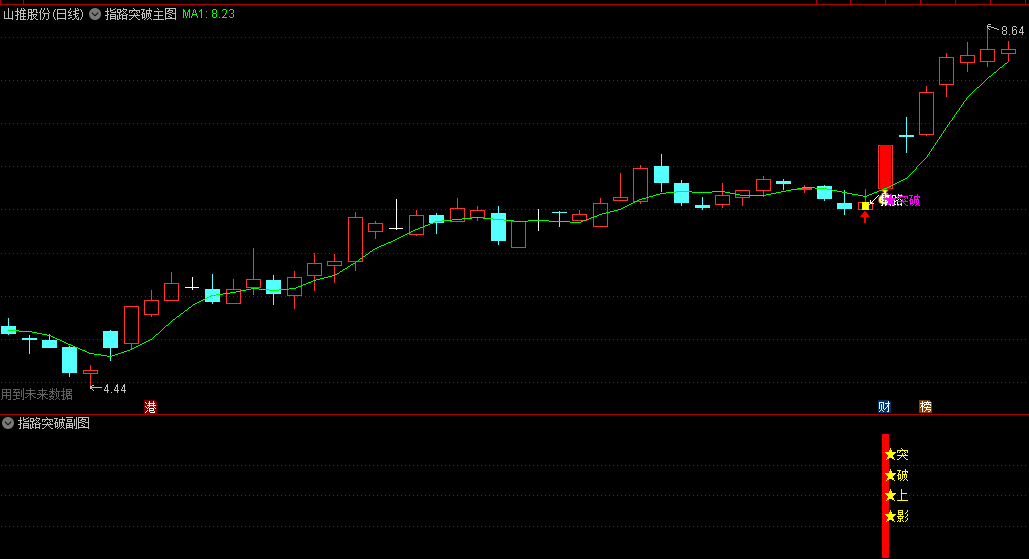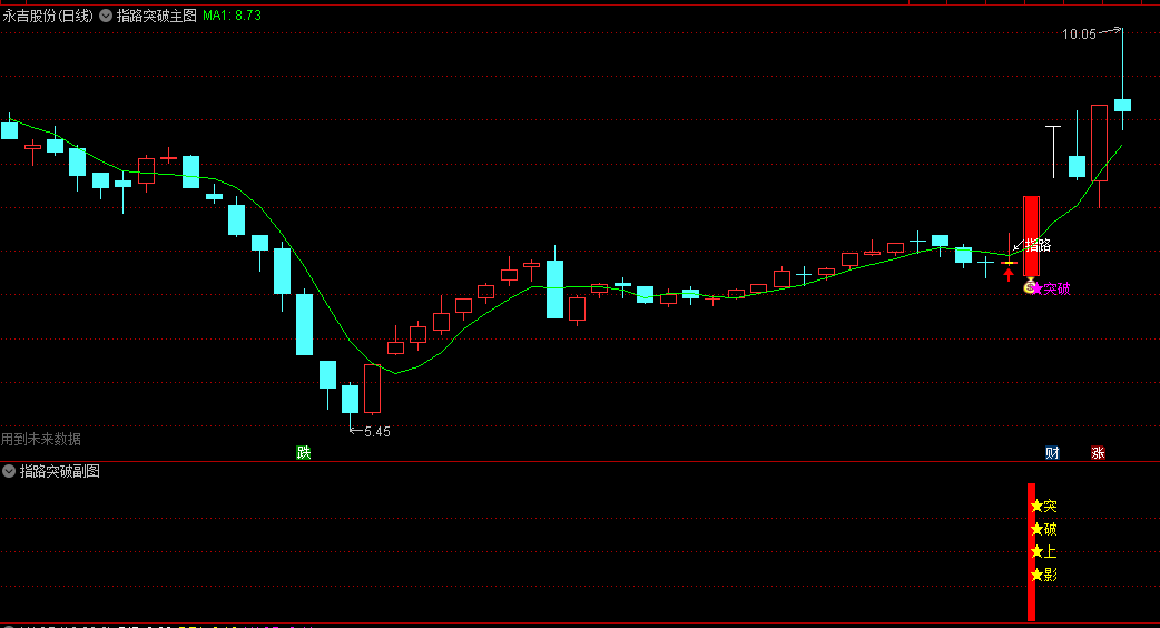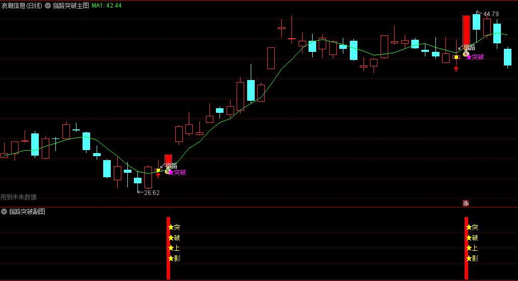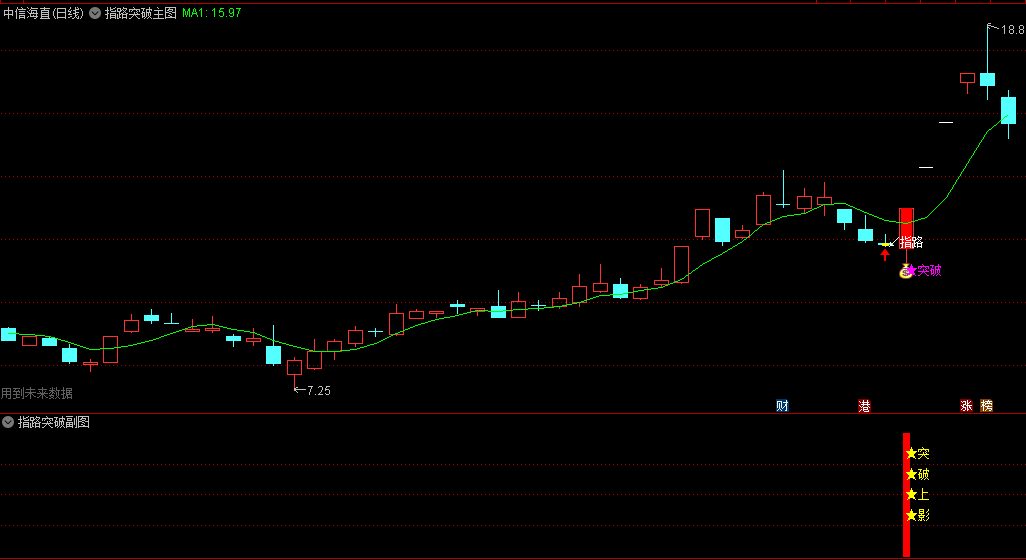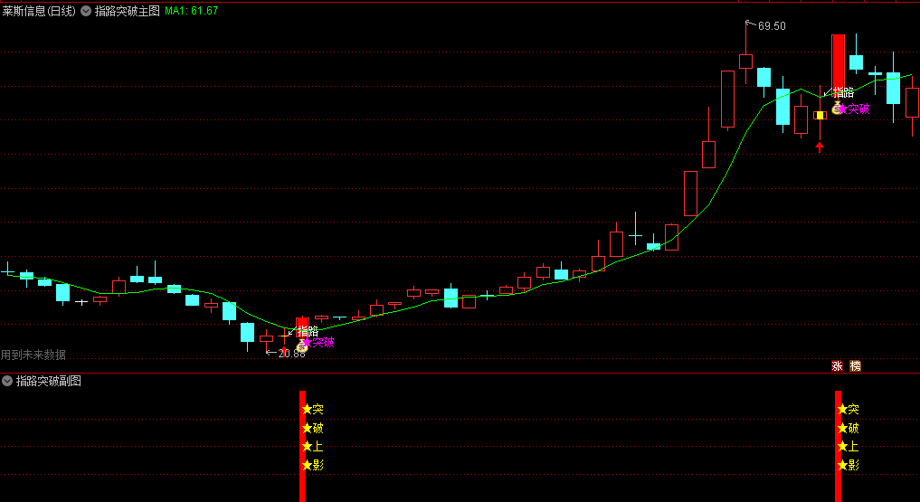 前一日的“指路”信号出现时,使用了未来,只是为了方便看出,不影响“突破”信号的参考使用,“突破”信号无未来函数。