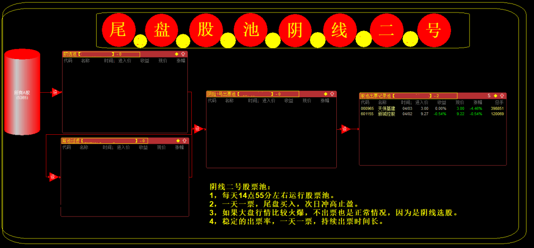 每天交易时间的14点55分开始运行股票池,这样能保证股池筛选全面,也能达到每天一票的目的,另外交易软件没有股票池功能不能用,免费版的通达信有股池功能可以用,下面提供详细的导入股票池步骤方法,此股票池一天一票,尾盘买入,次日冲高卖出。