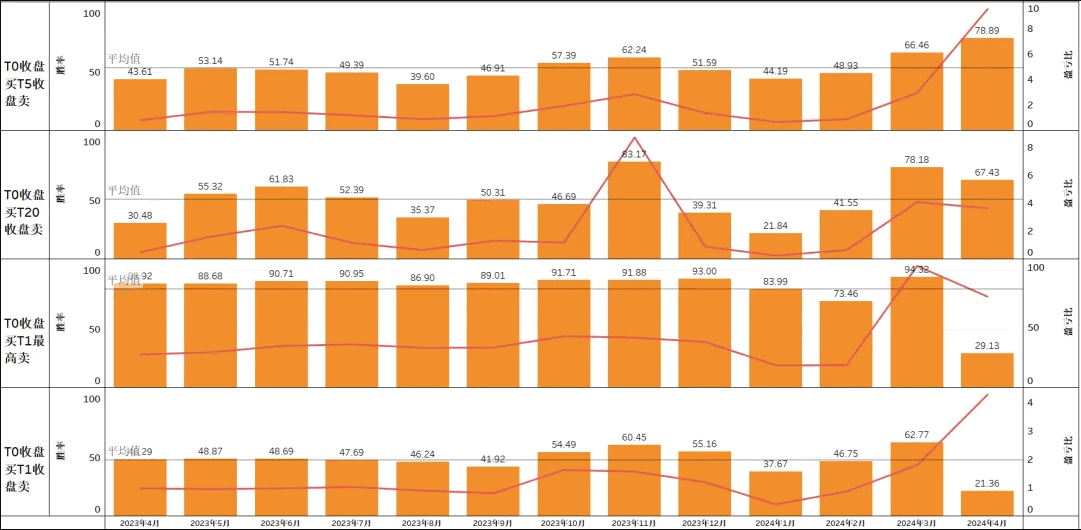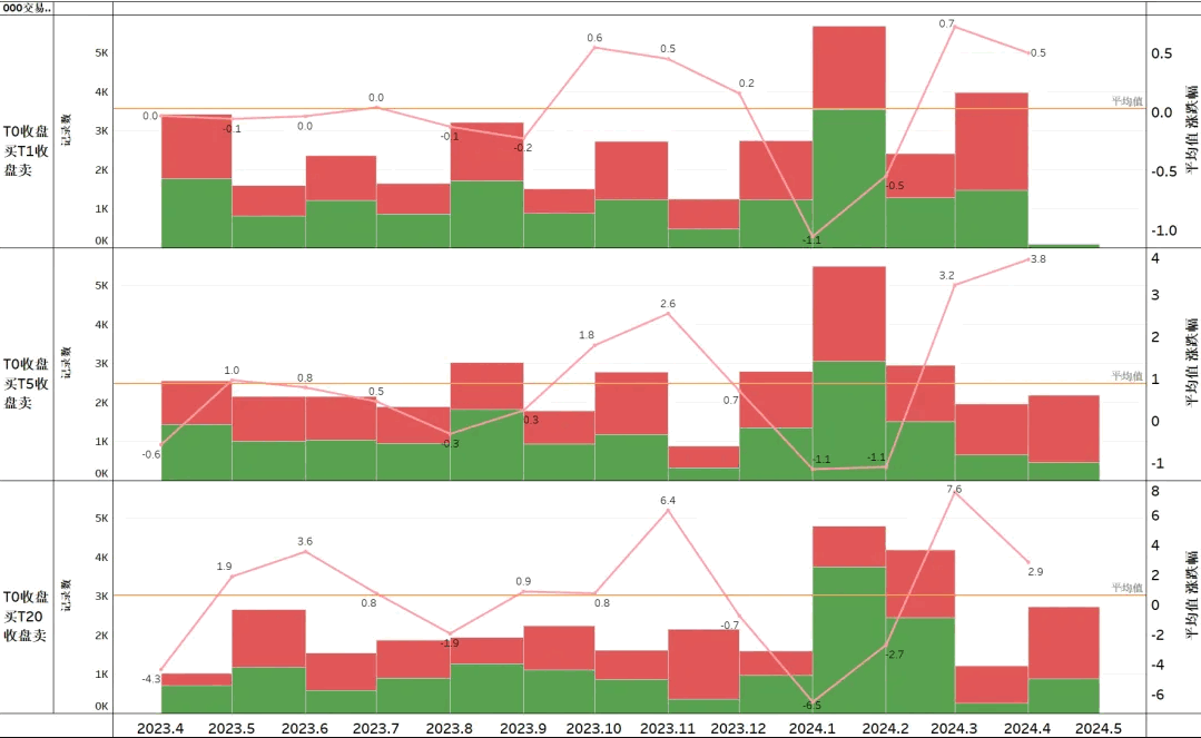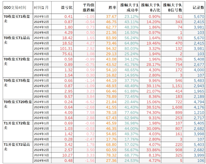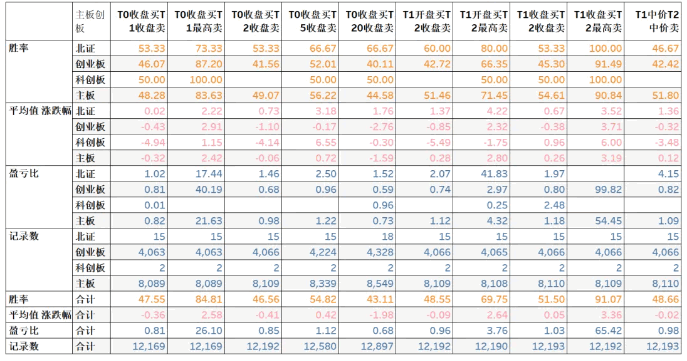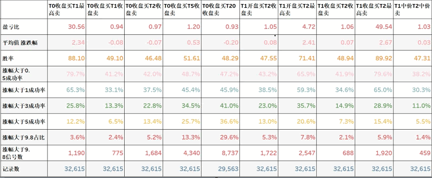 1、胜率及盈亏比:从胜率及盈亏比来看表现一般,次日最高卖,尾盘表现一般。