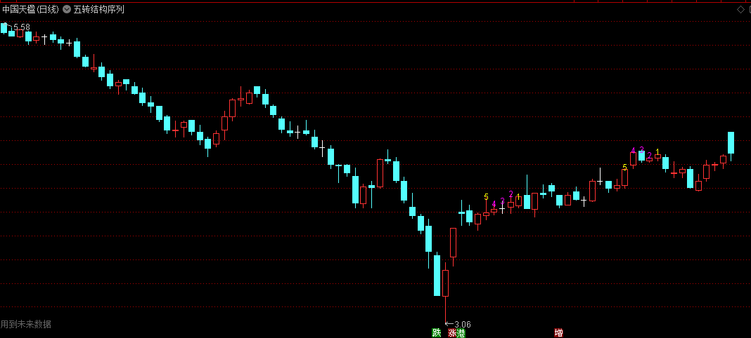分享通达信的五转结构序列主图指标。网络上流传的多数版本已经发展至23转系列,其复杂性似乎有增无减。然而,我始终倾向于简洁明了的方案,因此,我将九转序列精简至五转,力求在保持核心功能的同时,降低操作的复杂性。