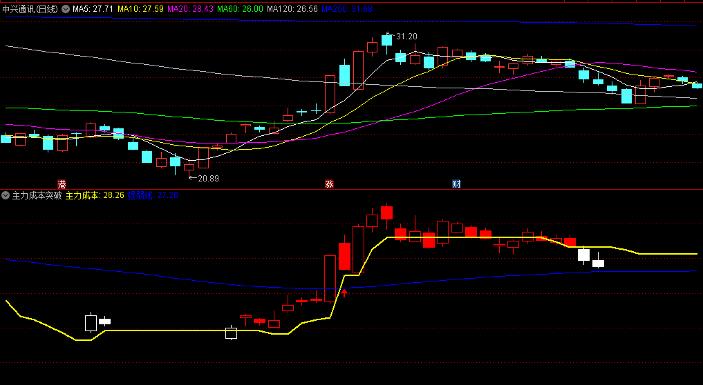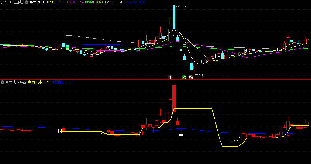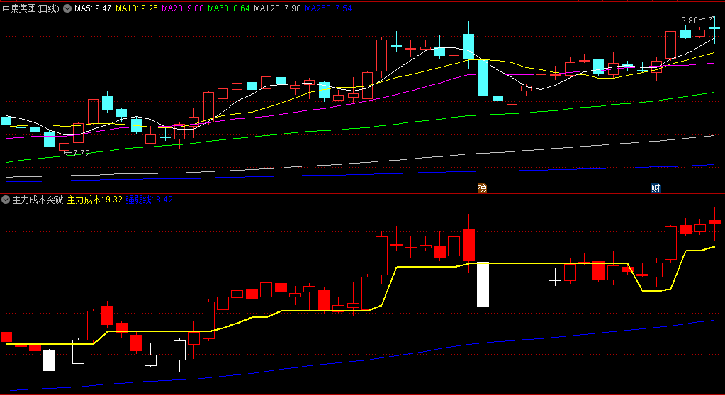 〖主力成本突破〗副图指标 跟着主力有肉吃 无未来 通达信 源码